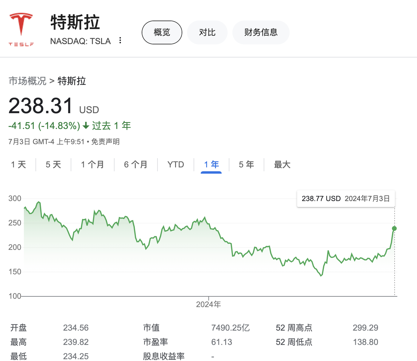 特斯拉行情概覽